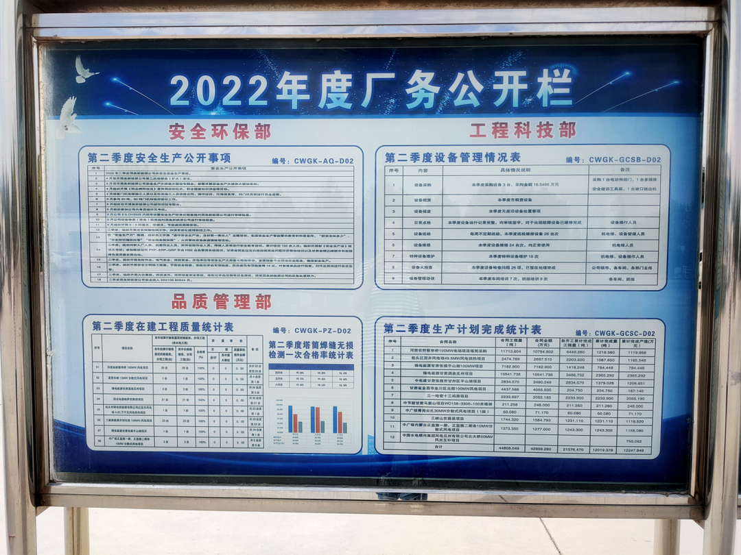 三是坚持厂务公开制度,定期按时对职工群众关心的问题进行公开,主动接受监督。公开的主要内容有:企业生产经营决策和企业内部改革、工资发放、人事任免、业务招待费的使用、大宗材料采购、废旧物资处理等。厂务公开工作的开展增强了企业各项工作的透明度,密切了干群关系,充分调动了广大职工工作积极性和主动性。