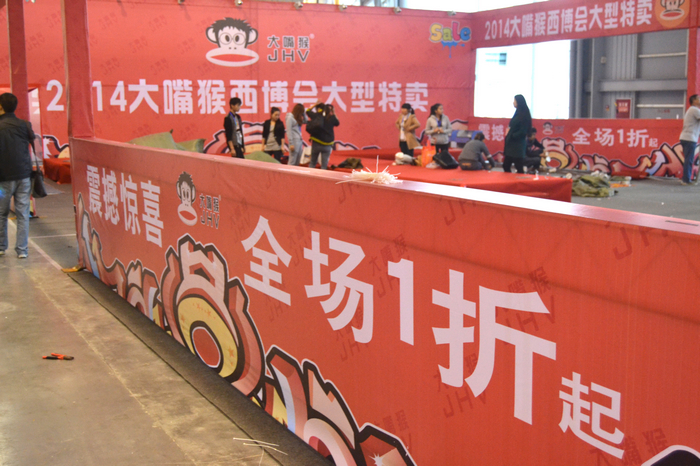 ★大嘴猴服饰在现场搭建了T台,届时将会有现场走秀活动,数百款产品参加特卖会;