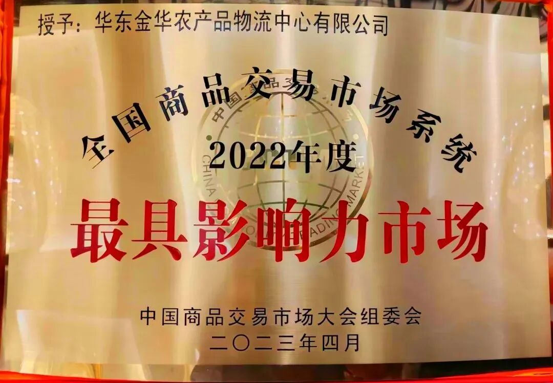 4月21日,在福建厦门召开的第二十三届中国商品交易市场大会上,华东金华农产品物流中心获2022年度“全国商品交易市场最具影响力市场”荣誉称号,市场经营户老虎头果品、李红果品、婺州果品、鑫旺果品被评为“全国商品交易市场金牌批发商”。此次殊荣的获得充分体现了业内对华东金华农产品物流中心行业地位的认可和肯定,进一步扩大了市场在流通领域的品牌知名度和影响力。