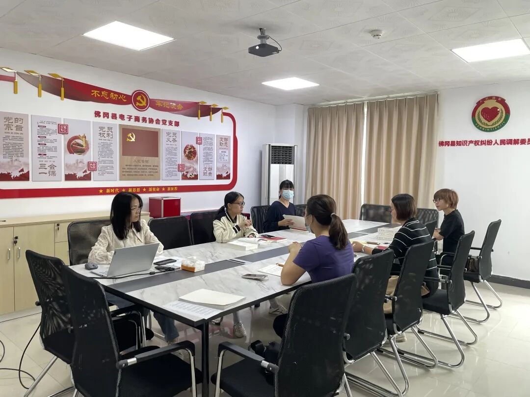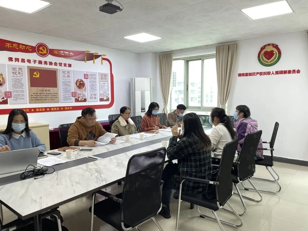 2022年11月15日,佛冈县电子商务协会党支部召开党员大会,党支部书记朱翠娟组织支部成员学习《习近平谈治国理政》,贯彻党的20大精神。