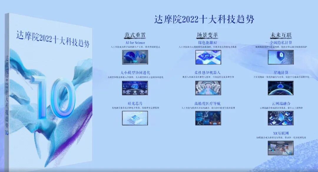 12月28日,阿里巴巴达摩院发布2022十大科技趋势,这是达摩院连续第四年发布前沿科技趋势预测。达摩院分析了近三年来的770万篇公开论文、8.5万份专利,覆盖159个领域,挖掘其中热点及重点技术突破,深度访谈近100位科学家,提出了2022年可能照进现实的十大科技趋势,覆盖人工智能、芯片、计算和通信等领域。