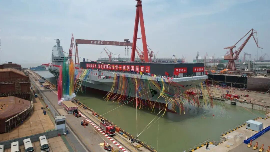 6月17日,我国第三艘航空母舰下水命名仪式在中国船舶集团有限公司江南造船厂举行。经中央军委批准,我国第三艘航空母舰命名为“中国人民解放军海军福建舰”,舷号为“18”。福建舰是我国完全自主设计建造的首艘弹射型航空母舰,采用平直通长飞行甲板,配置电磁弹射和阻拦装置,满载排水量8万余吨。该舰下水后,将按计划开展系泊试验和航行试验。福建舰顺利下水标志着我国海军装备现代化建设取得了又一重大的历史性突破,对于进一步提升我国海军维护国家海洋权益的能力具有重要意义。