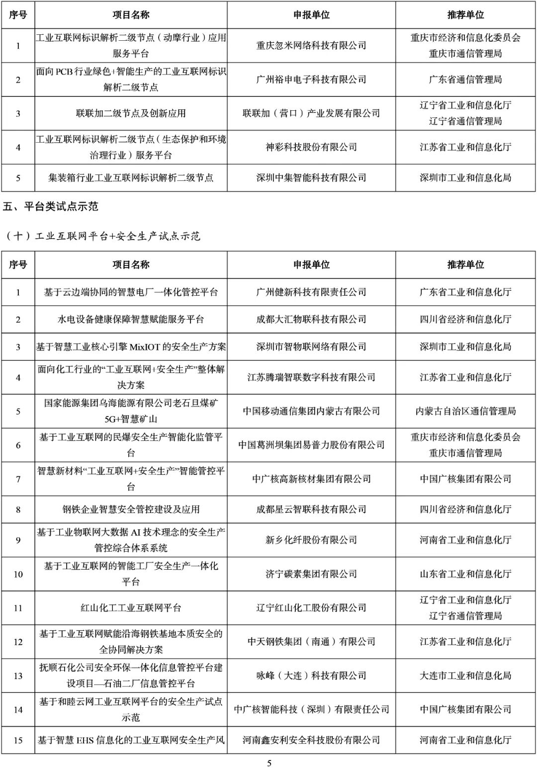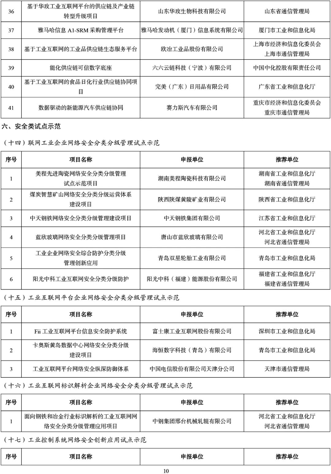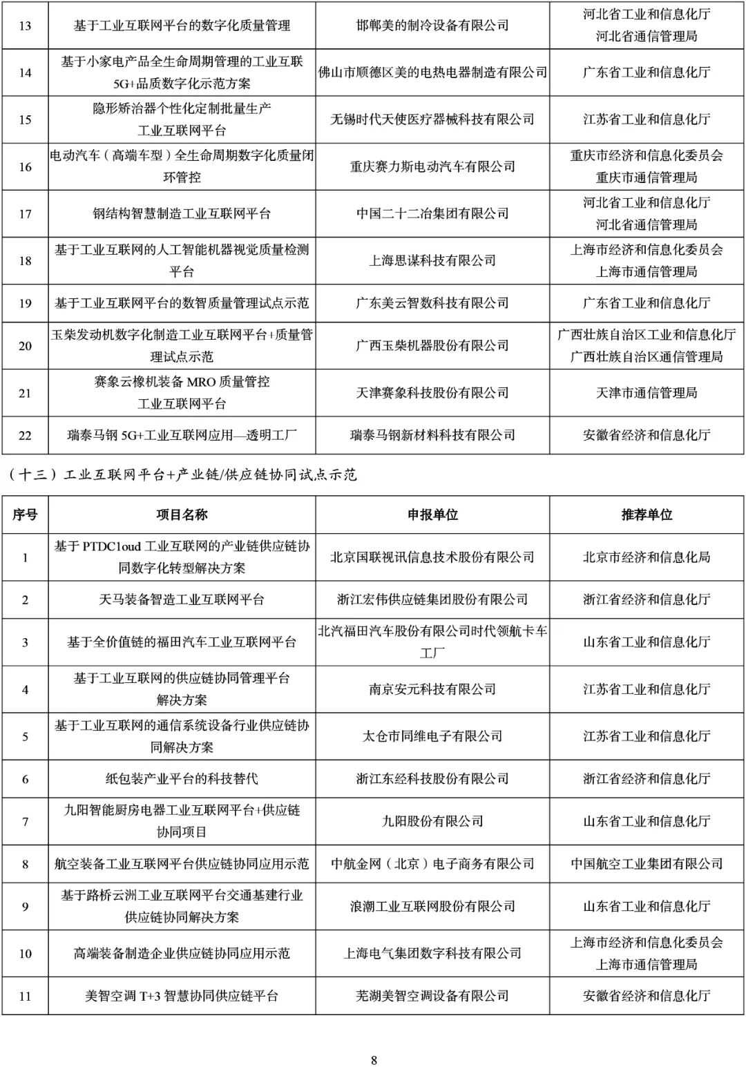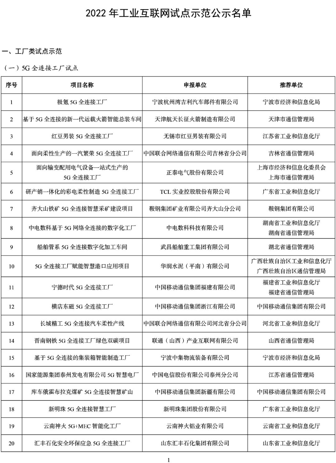 为深入贯彻《国务院关于深化“互联网+先进制造业”发展工业互联网的指导意见》,根据《工业和信息化部办公厅关于组织开展2022年工业互联网试点示范项目申报工作的通知》(工信厅信管函〔2022〕252号),经企业申报、地方推荐、专家评审,形成2022年工业互联网试点示范名单。现予以公示,欢迎社会各界监督。如有异议,请在公示期内与我们联系。