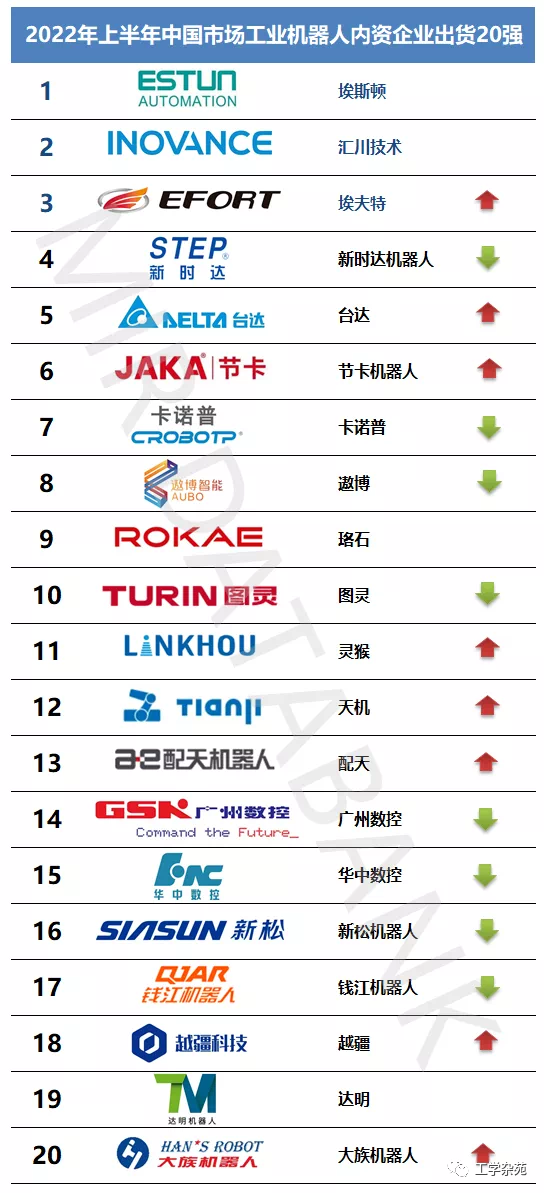 国内品牌中,埃斯顿位列榜首,节卡和珞石去年尚未上榜,作为今年的新进者,节卡直接位列16位。