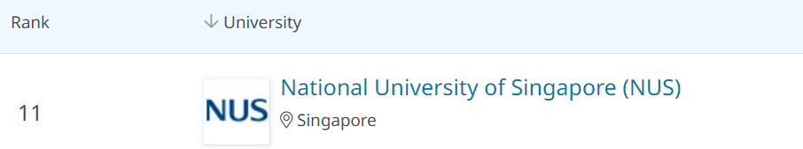 新加坡国立大学在2023QS世界大学排名中位列第11,综合得分92.7