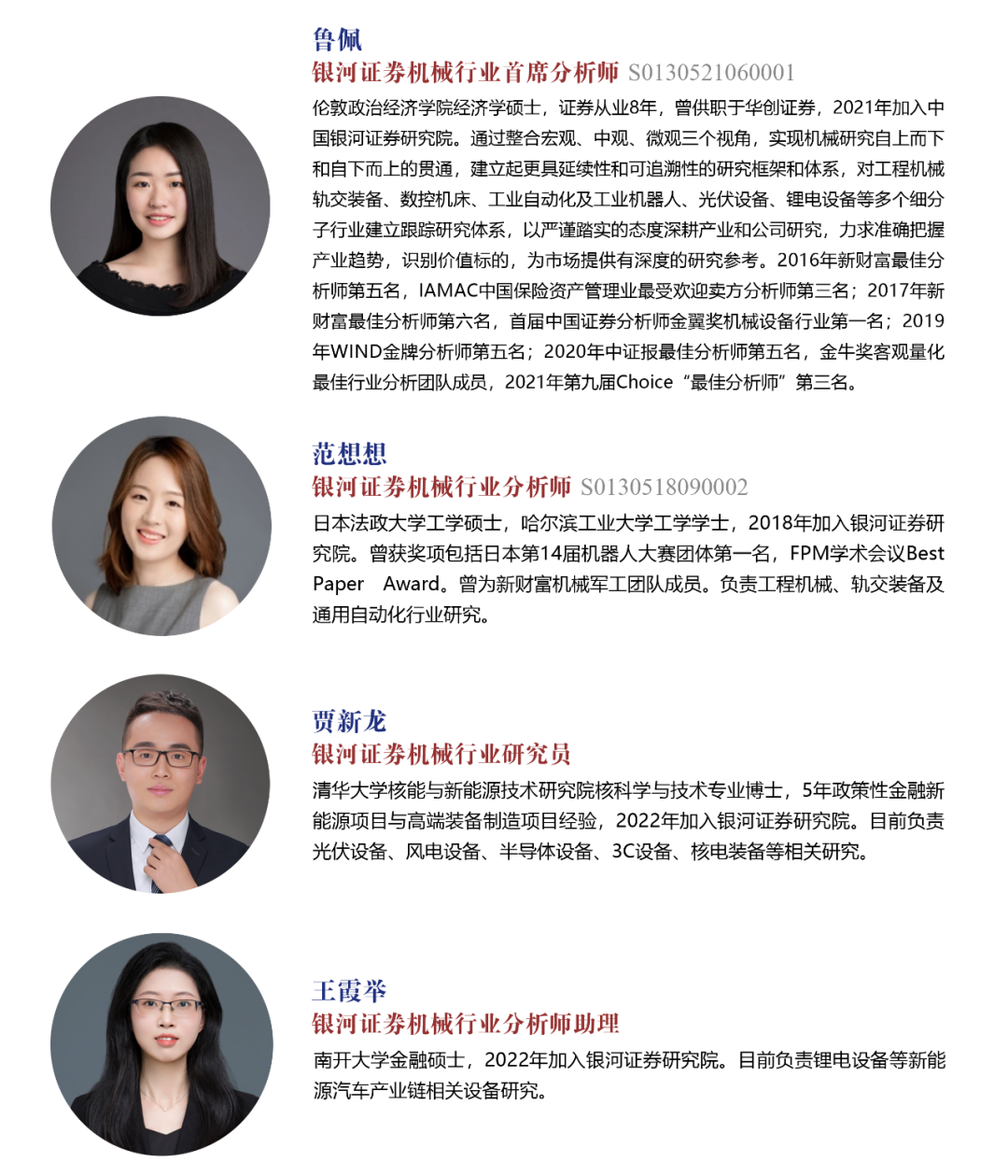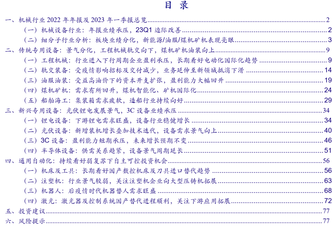 本文摘自:中国银河证券2023年5月29日发布的研究报告《【银河机械】机械设备行业2022年报及2023年一季报总结:板块景气分化,一季度业绩边际改善》