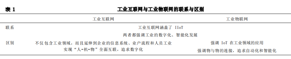 工业物联网是指通过将工业资源进行互联互通实现制造流程各阶段的优化,构建服务驱动型的新工业生态体系。工业互联网与工业物联网的联系与区别见下表。