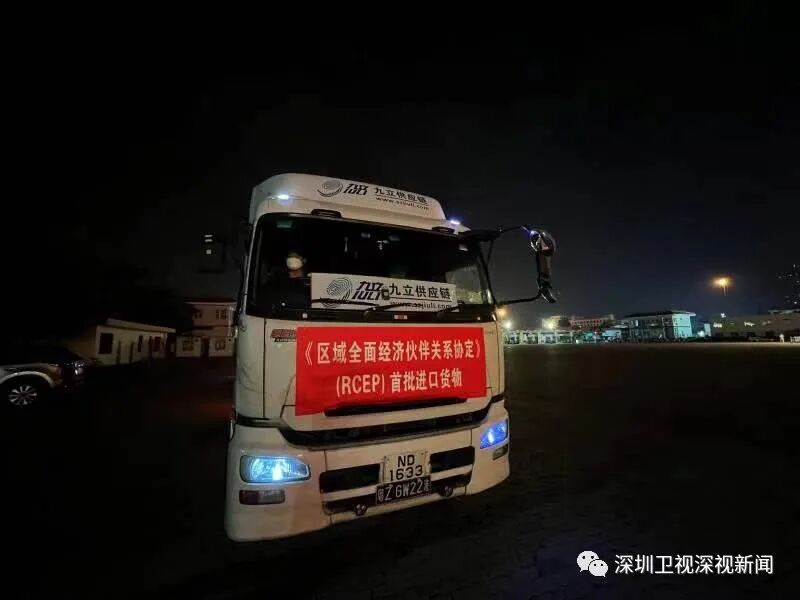 随着RCEP正式生效,1月1日零时,一辆挂着“《区域全面经济伙伴关系协定》(RCEP)首批进口货物”的粤港两地牌货车,低速驶入皇岗口岸海关查验场,车上载着5.6吨原产日本的反射膜是协定生效后的全国首票进口货物。