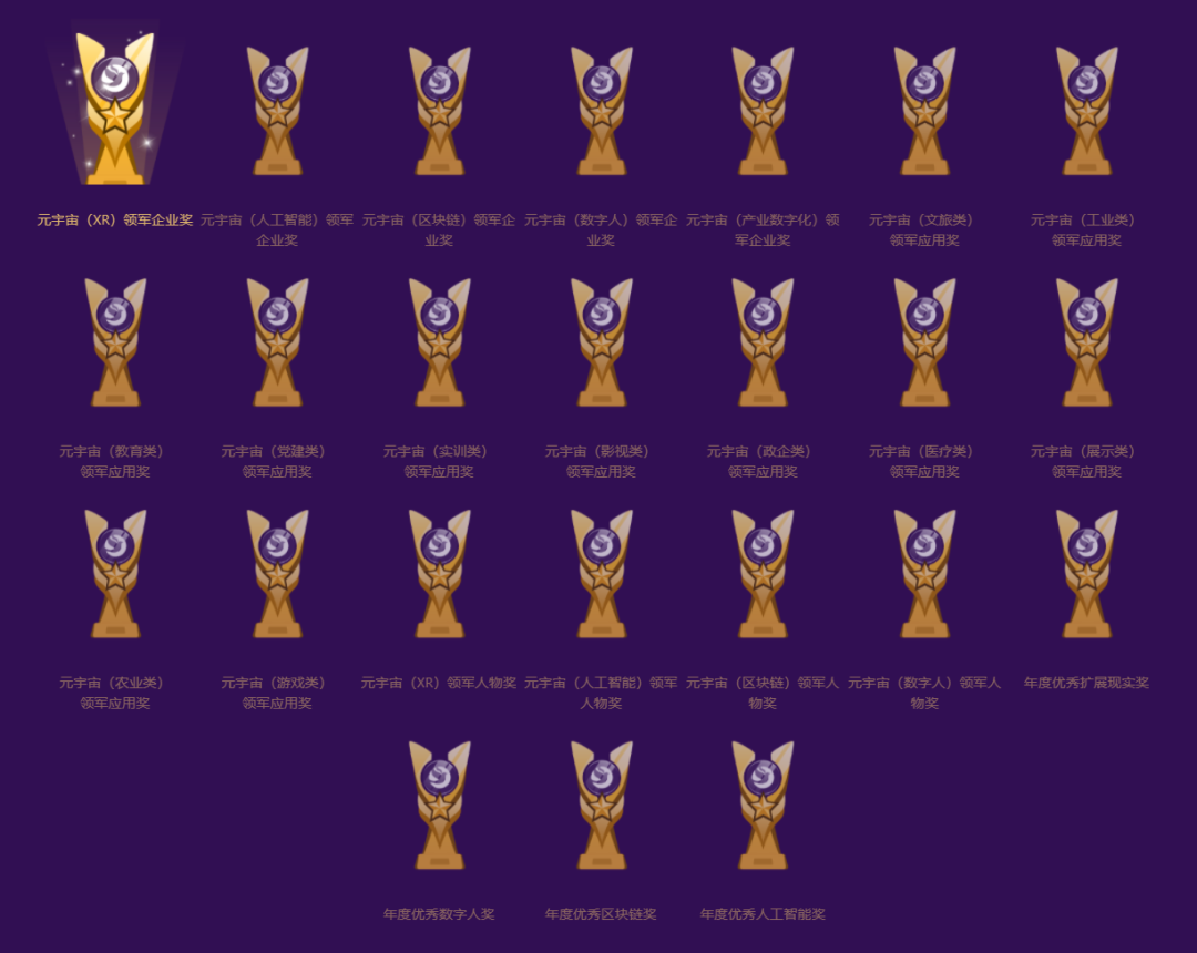 值得一提的是,第24届高交会2022世界元宇宙生态大会第六届全球5G+VR大会奖项第五届中国“天鸽奖”颁奖盛典也将与大会同期举行。“天鸽奖”是在国家工信部、深圳人民政府指导下、由深圳市虚拟现实产业联合会主办,多家行业学术、产业等知名机构协办,大象科创数字经济产业(深圳)集团有限公司承办,为助力科技创新应用所特设的创新奖项。已在多地成功举办四届的“天鸽奖”颁奖盛典。天鸽奖的寓意是指鸽子的“飞信传书”功能,鸽子是人类历史上最早实现长距离信息传输的方式,与参选企业的行业特征相符合。鸽子出色的方向辨别天赋、对确定目标的执着追求,也是参选企业应该具有的能力和精神。众所周知,鸽子寓意“和平”,正是参选企业期望给人类生活带来的美好目标。本届“天鸽奖”结合元宇宙发展的大势大潮。紧密追随《中华人民共和国国民经济和社会发展第十四个五年规划和2035年远景目标纲要》、《虚拟现实与行业应用融合发展行动计划(2022-2026年)》等数字经济发展的宏伟蓝图,激励更多的元宇宙企业在推进关键技术融合创新、提升全产业链条供给能力、加速多行业多场景应用落地、加强产业公共服务平台建设、构建融合应用标准体系这五大方面为产业发展作出更多更全的贡献。特设立了元宇宙(XR、人工智能、区块链、数字人、产业数字化)领军企业奖;元宇宙(文旅、工业、教育、党建、实训、影视、政企、医疗、展示、农业、游戏)领军应用奖;元宇宙(XR、人工智能、区块链、数字人)领军人物奖;年度优秀(扩展现实、数字人、区块链、人工智能)企业奖等多维度多领域的重量级奖项。