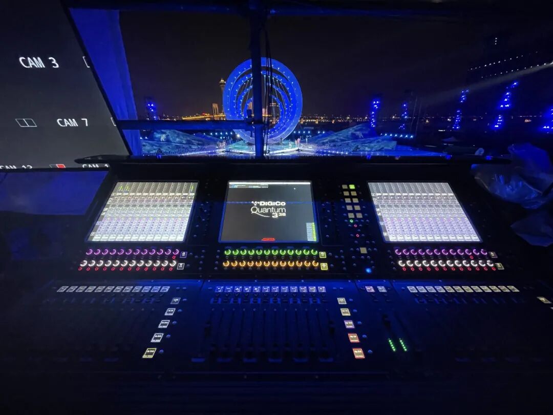 新年音乐会共使用了4张DiGiCo Quantum 338调音台、四个SD Rack接口箱。四个接口箱主要分布:PA控台一台、舞台左右分别一台、Monitor控台一台。