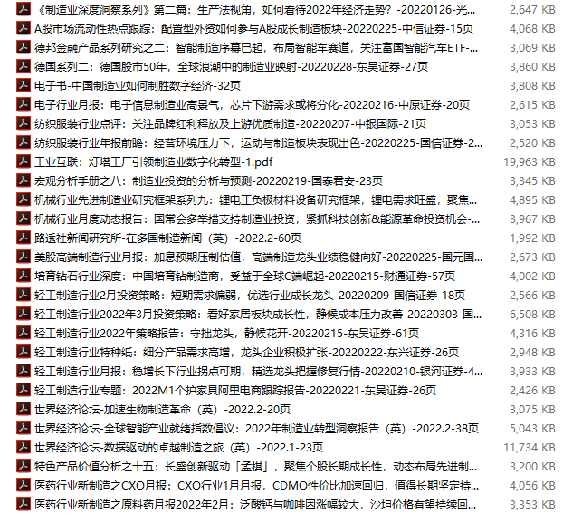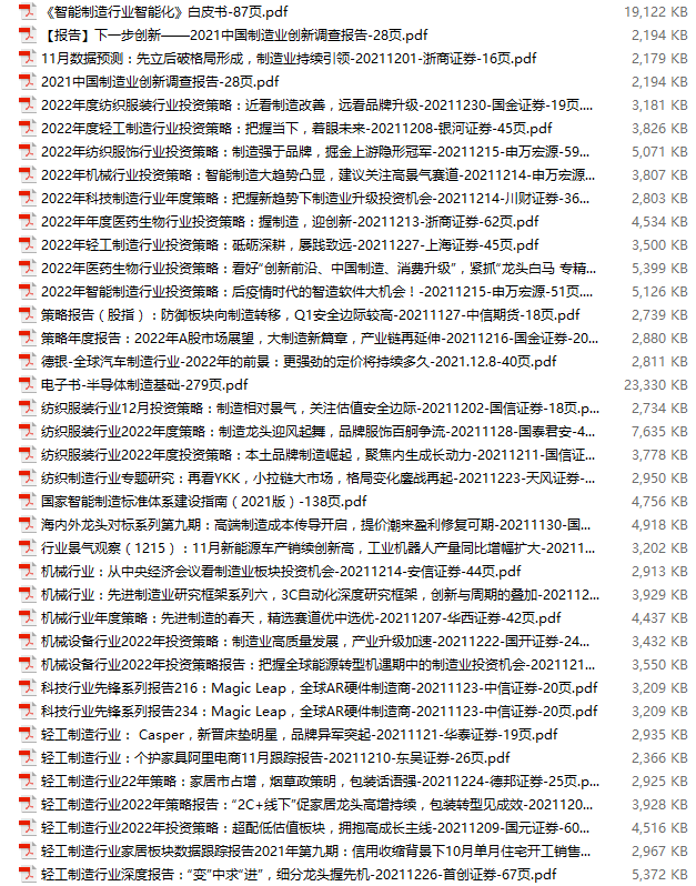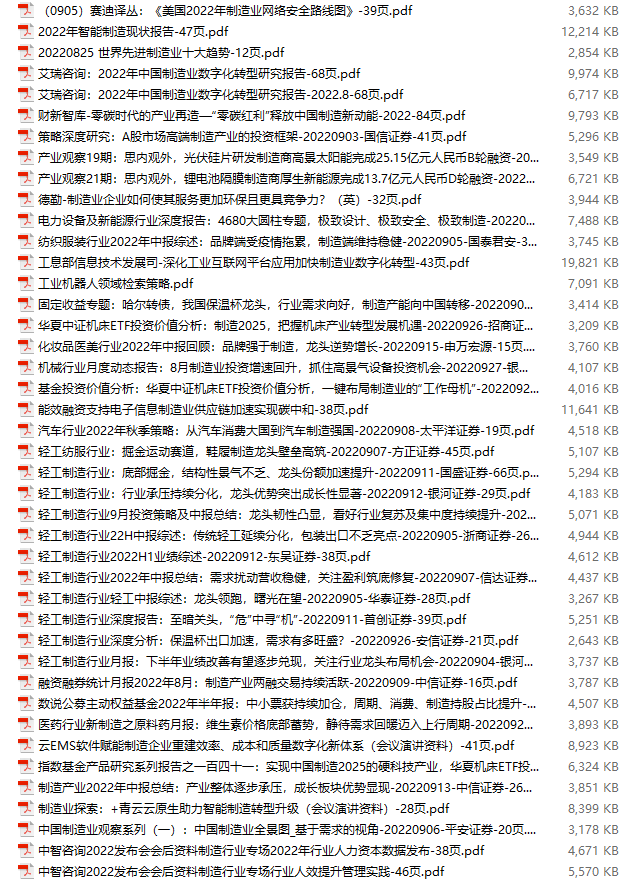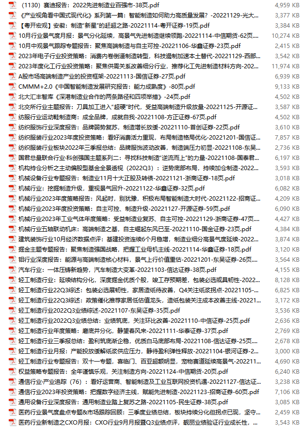 制造业、智能制造-专题-2022月度新增34份(2.13-3.12)制造业、智能制造-专题-2022月度新增38份(1.9-2.12)制造业、智能制造-专题-2022月度新增56份(12.5-1.8)制造业、智能制造-专题-2022月度新增50份(11.7-12.4)制造业、智能制造-专题-2022月度新增47份(10.10-11.6)制造业、智能制造-专题-2022月度新增42份(9.5-10.9)制造业、智能制造-专题-2022月度新增32份(8.8-9.4)