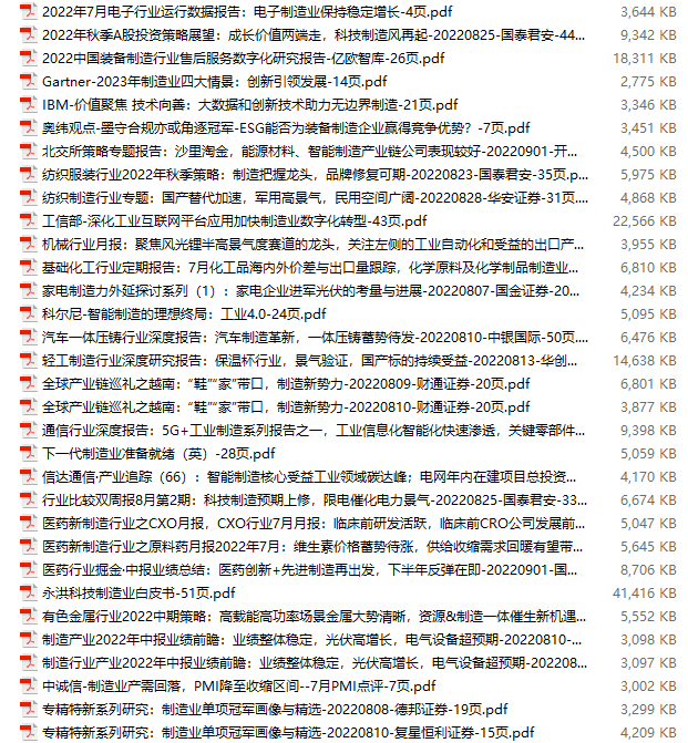 制造业、智能制造-专题-2022月度新增47份(7.4-8.7)制造业、智能制造-专题-2022月度新增31份(6.6-7.3)制造业、智能制造-专题资料-2022月度新增64份(5.2-6.5)制造业、智能制造-专题资料-2022月度新增34份(4.4-5.1)制造业、智能制造-专题资料-2022月度新增26份(3.7-4.3)制造业、智能制造-专题资料-2022月度新增27份(1.31-3.6)制造业、智能制造-专题资料-2022月度新增31份(1.3-1.30)制造业、智能制造-专题资料-2021月度新增62份(11.22-1.2)制造业、智能制造-专题资料-2021月度新增41份(10.18-11.21)制造业、智能制造-专题资料-2021月度新增33份(9.20-10.17)制造业、智能制造-专题资料-2021月度新增59份(8.16-9.19)制造业、智能制造-专题资料-2021月度新增40份(7.12-8.15)