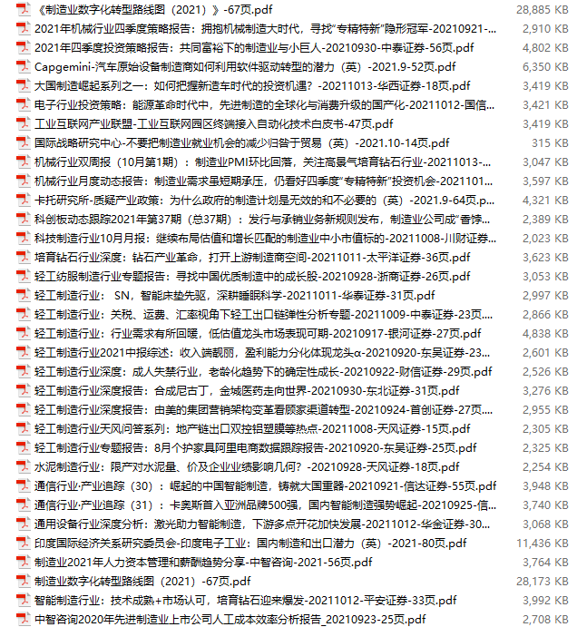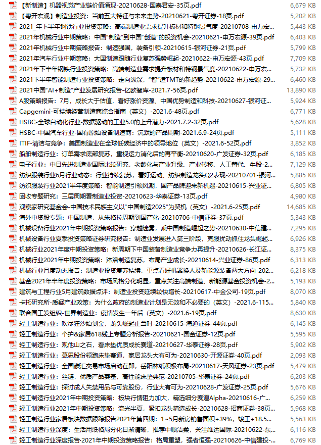 制造业、智能制造-专题资料-2021月度新增54份(6.14-7.11)制造业、智能制造-专题资料-2021月度新增46份(5.17-6.13)