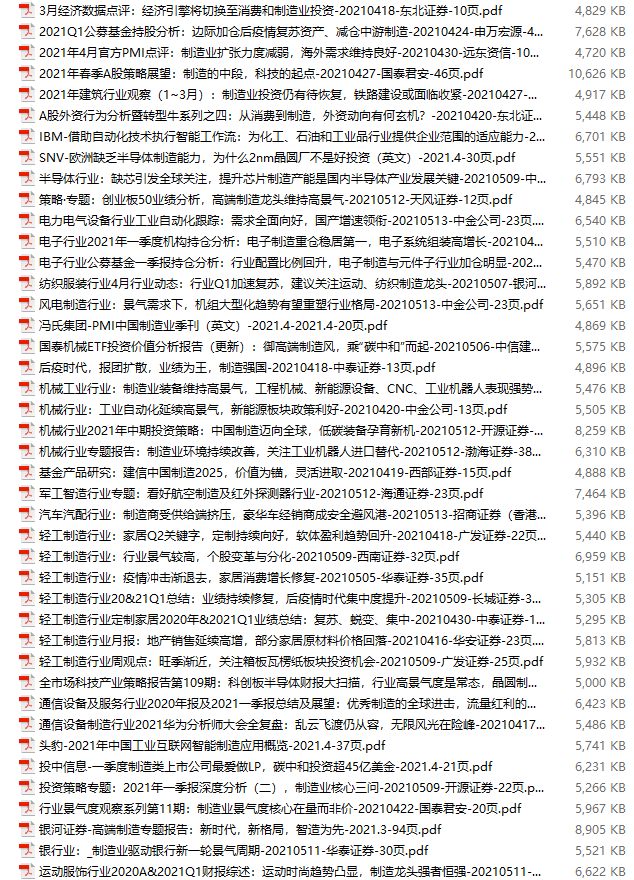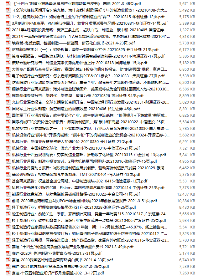 制造业、智能制造-专题资料-2021月度新增54份(3.15-4.18)