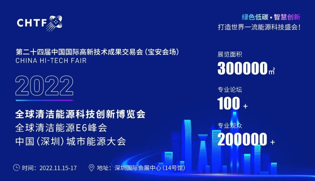 在党的二十大成功召开与实施“十四五”规划的关键之年,在习近平新时代中国特色社会主义思想指引下,高交会——全球清洁能源科技创新博览会将与您紧密携手,共同为实现“30·60”双碳目标,建设能源强国、科技强国,实现“两个一百年”奋斗目标和中华民族伟大复兴的中国梦、推动全球绿色可持续发展、构建“人类命运共同体”做出更大贡献。