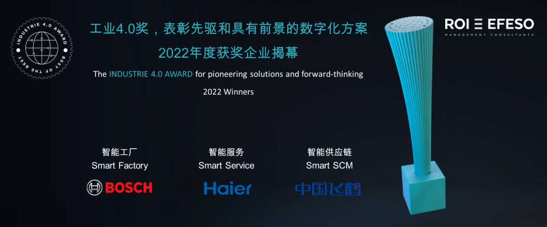 过去一年,全球增长减速,疫情阴霾考验着制造业的耐力,保持现状似乎都成了奢望。尽管困难重重,仍旧有一些勇敢者热情依旧,默默借助工业4.0逆流而上,成绩斐然。近期,勇于探索中佼佼者浮出水面。2022年12月1日,欧洲知名管理咨询集团瑞欧盈-埃非索颁发2022年度工业4.0中国奖,获奖的企业及其奖项为:海尔-智能服务奖项,博世华域-智能工厂奖项,飞鹤-智能供应链奖项。