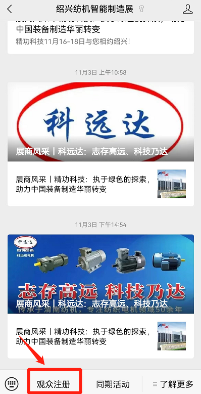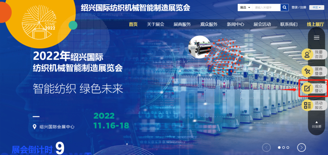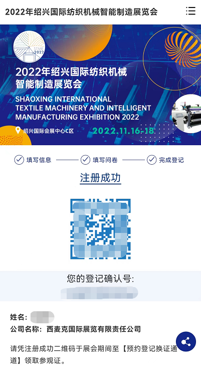 展会实行预约参观制,可以在绍兴纺机展官方微信公众号和官方网站进行观众登记。观众需要凭借预约确认二维码现场换取观众胸卡入场。