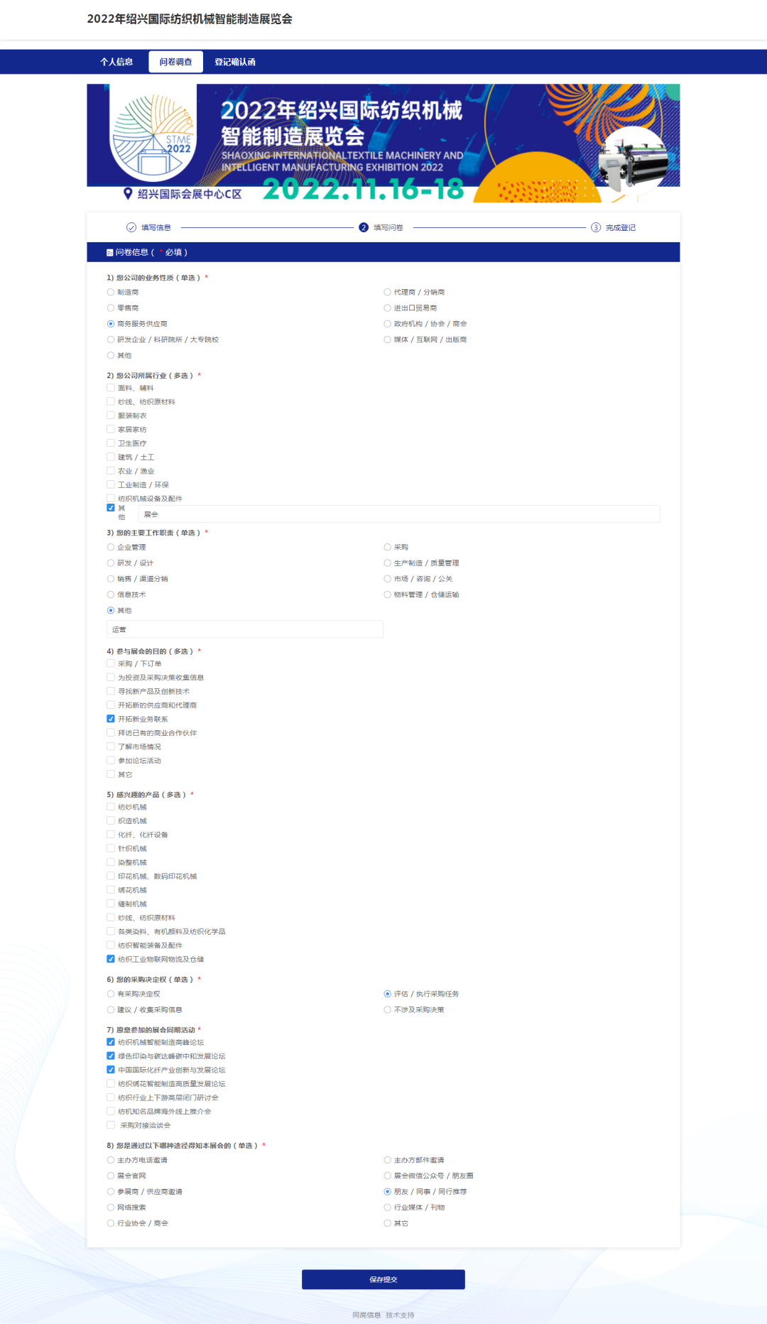 4、勾选调查问卷表,完成后点击“保存提交”按钮