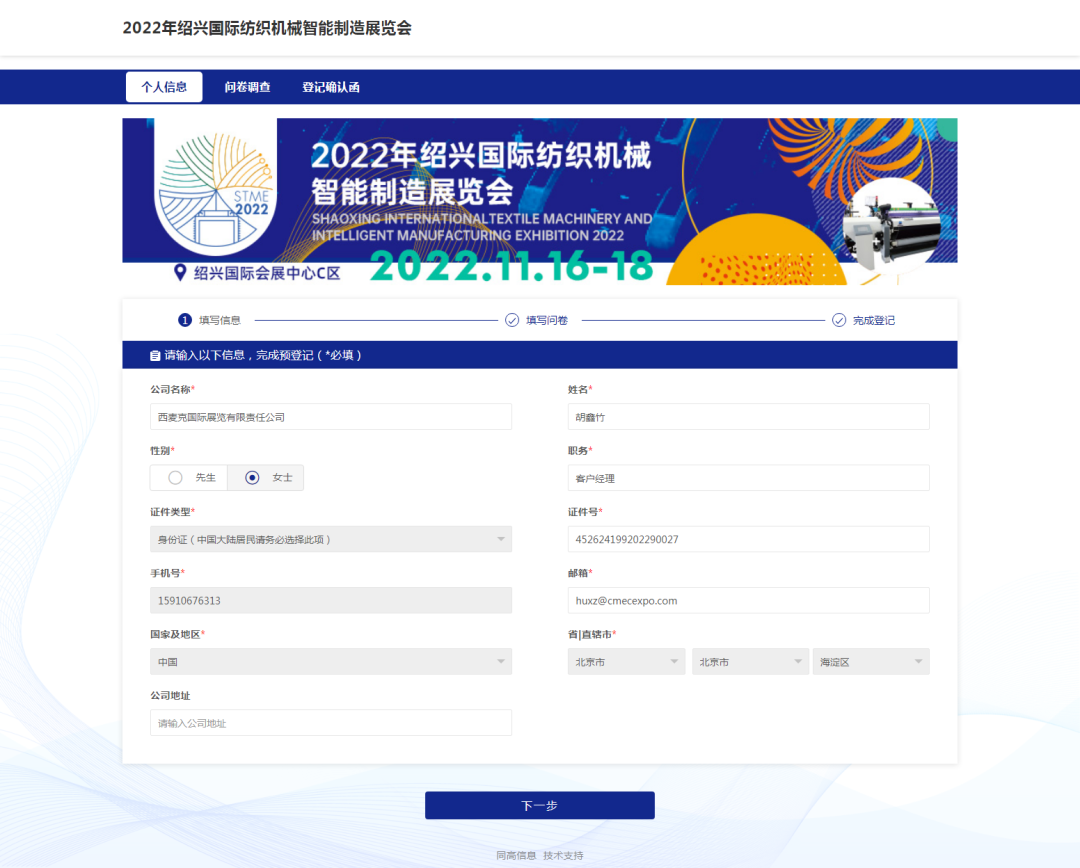 点击“观众登记“→”立即注册“→使用手机号码进行注册→填写基本信息→填写调查问卷→完成登记→预约成功