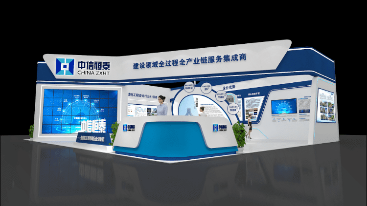 展区通过生动的展示造型与空间环境的整体化搭配,采用简约、半开放的设计风格,结合公司标识蓝、白色系搭配,充分展现了公司企业文化;大型LED屏幕、数字产品交互演示与宣传展板相结合,通过丰富的多媒体技术,增强展陈效果的互动性、参与性。展位设置公司介绍、荣誉展示、发展大事记、企业优势、抗疫建设、PPP咨询、全过程工程咨询、中信恒泰综合设计研究院、数字建筑、全产业链业务板块展示等内容,各专业技术负责人将在现场进行专业讲解,帮助观展者更好地了解公司业务板块与发展成果。