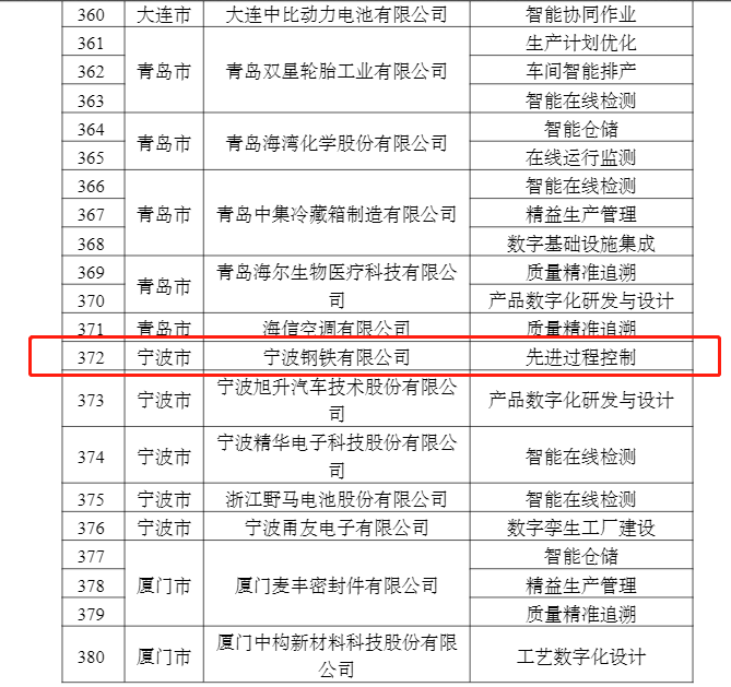 近日,工信部公示了2022年度智能制造示范工厂揭榜单位和优秀场景名单,宁波钢铁有限公司“先进过程控制”项目成功入选2022年度智能制造优秀场景,充分彰显了宁钢在行业智能制造领域的标杆形象。