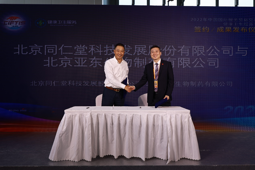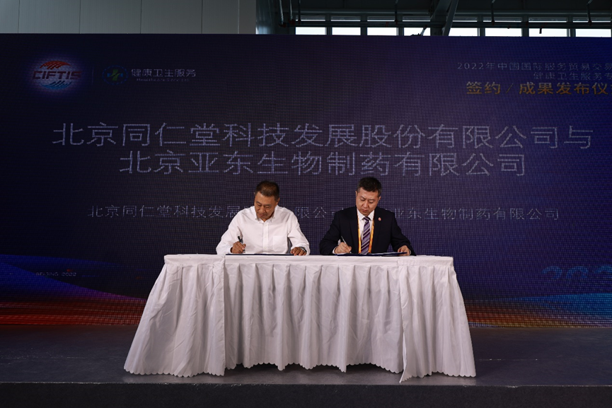 9月3日下午,中国国际服务贸易交易会签约仪式现场,北京亚东生物制药有限公司发布了最近几年来的创新成果,并与各合作企业进行现场签约。
