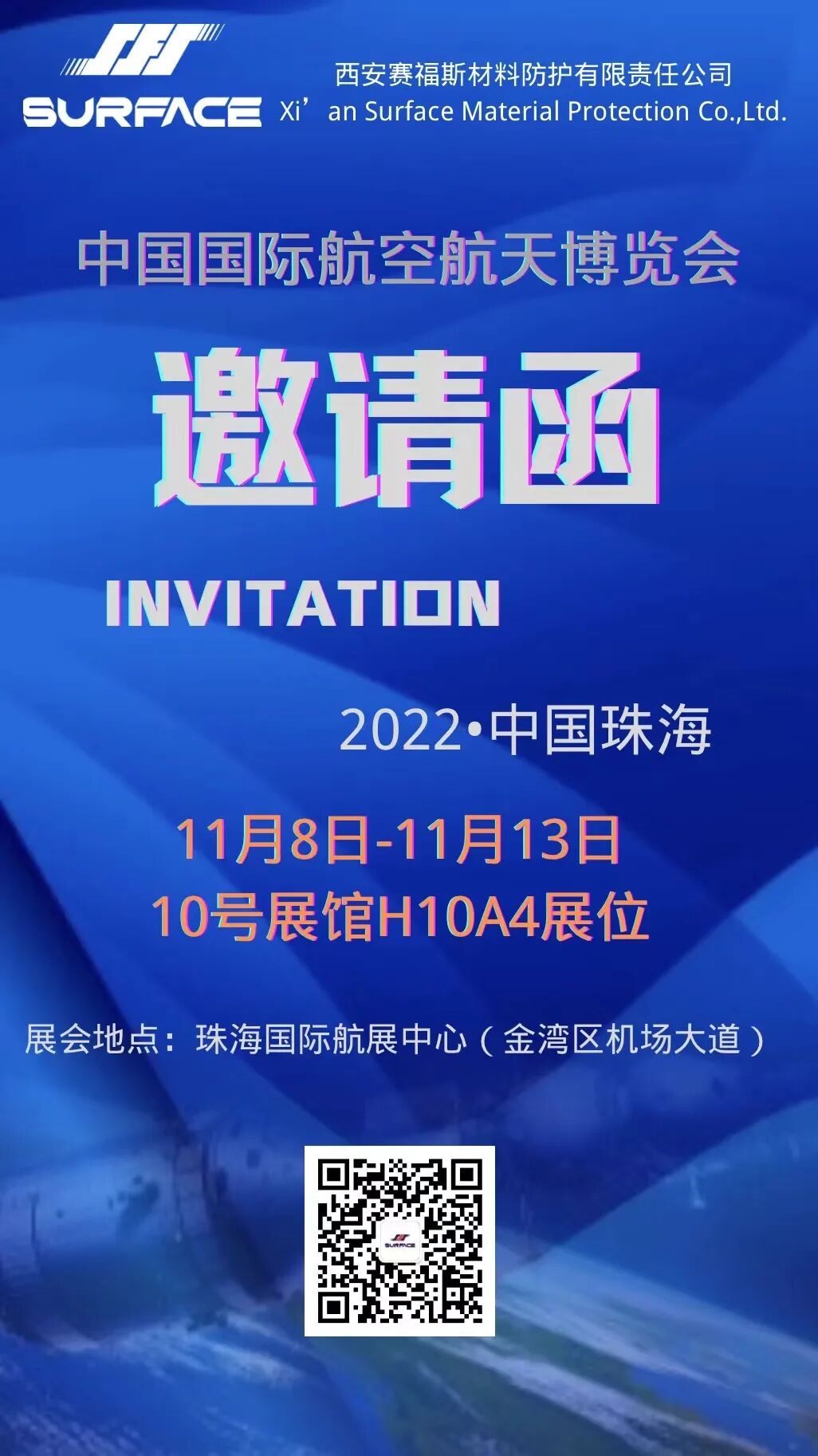2022年11月8-13日,第十四届中国国际航空航天博览会(珠海航展)将在广东省珠海市金湾区珠海国际航展中心盛大开幕。赛福斯公司将在十号展馆H10A4展位邀您共赴蓝天盛会,真诚期待您的到来!