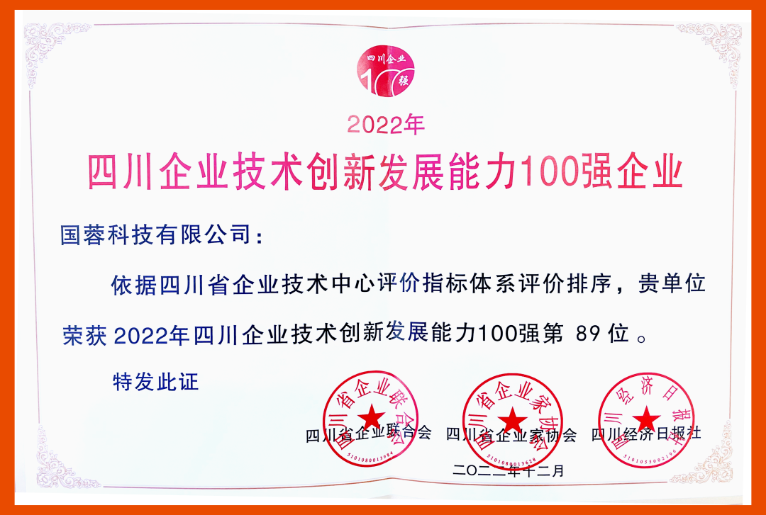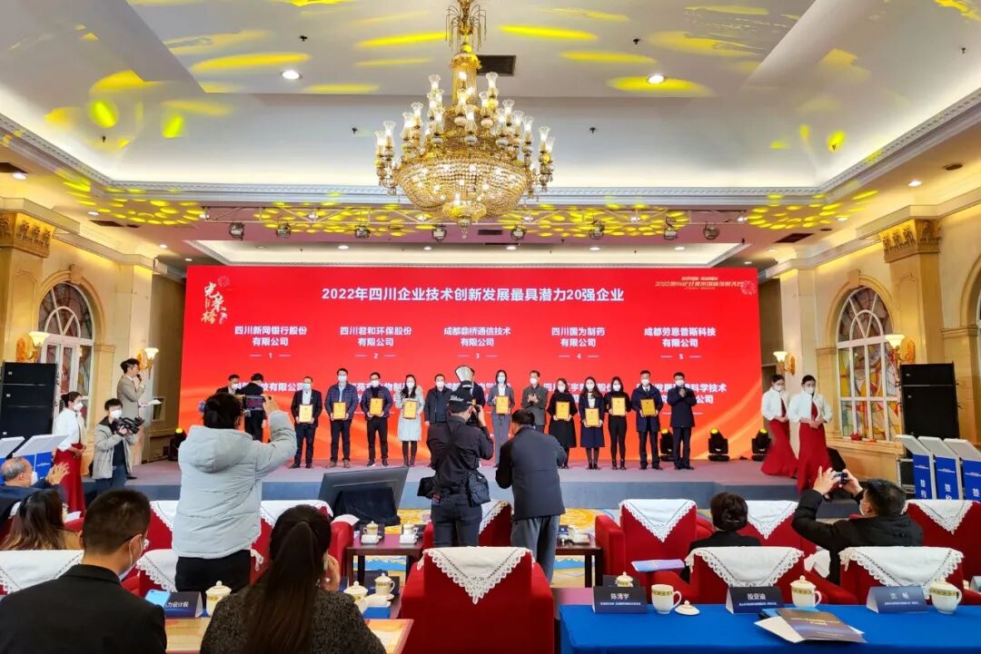 2022年12月29日,四川省企业联合会、四川省企业家协会和四川经济日报社联合组织召开四川企业技术创新发展大会,会上正式发布第六届“四川企业技术创新发展能力100强”榜单。华讯方舟集团旗下国蓉科技有限公司(以下简称:国蓉科技)顺利通过企业自主申报、系统评分、专家评审等程序,一举荣登2022四川企业技术创新发展能力100强企业第89位,企业发明专利拥有量100强企业第74位,最具潜力20强企业第6位榜单,并受邀作为企业代表亮相于本次大会。
