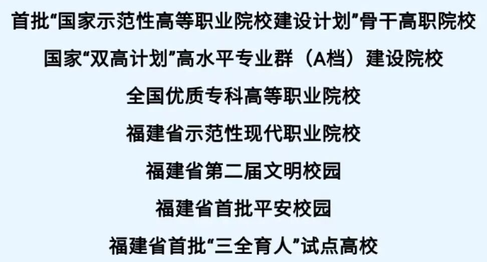 为国家级示范专业点、省级产教融合示范专业点、省示范性现代职业院校重点建设专业、智能制造省级服务产业特色专业群核心专业。机电一体化专业实训基地为省级实训基地、“1+X”工业机器人操作与运维省级管理中心,专业实训设备总值将近1000万元。专业与富士康集团、福州地铁、森达电气等10多家企业开展校企合作人才培养成效显著,在全省乃至全国都具有很好引领示范作用。