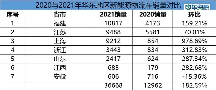 从近两年华东地区新能源物流车销量数据来看,华东区域整体呈正增长,涨幅达182.9%。