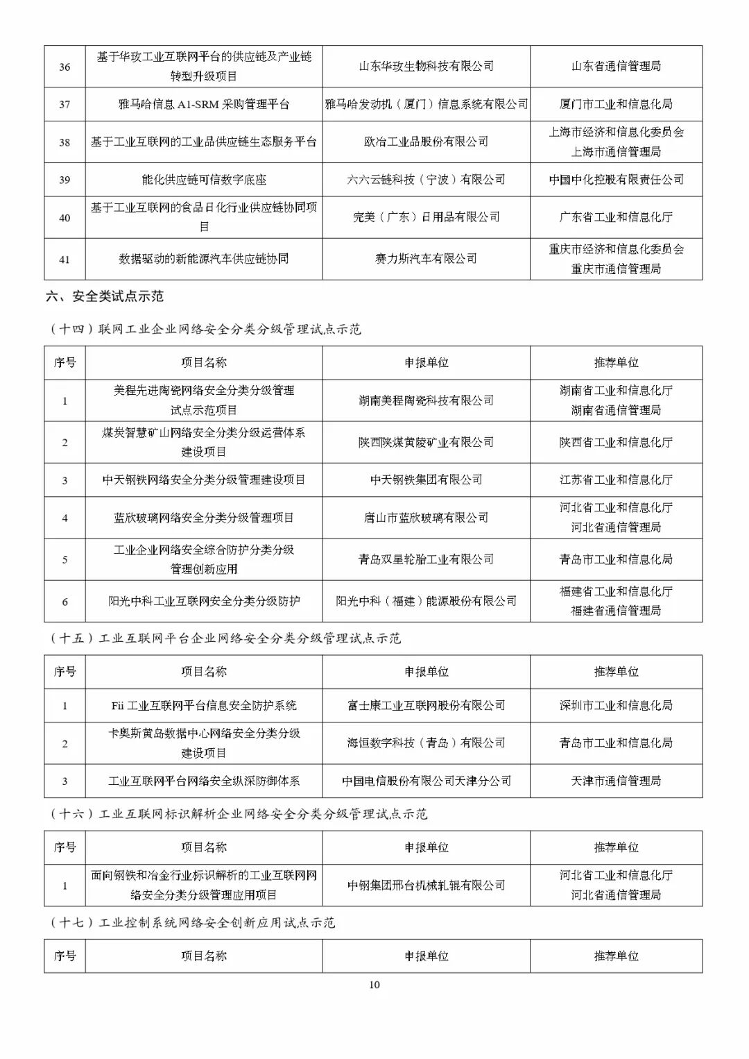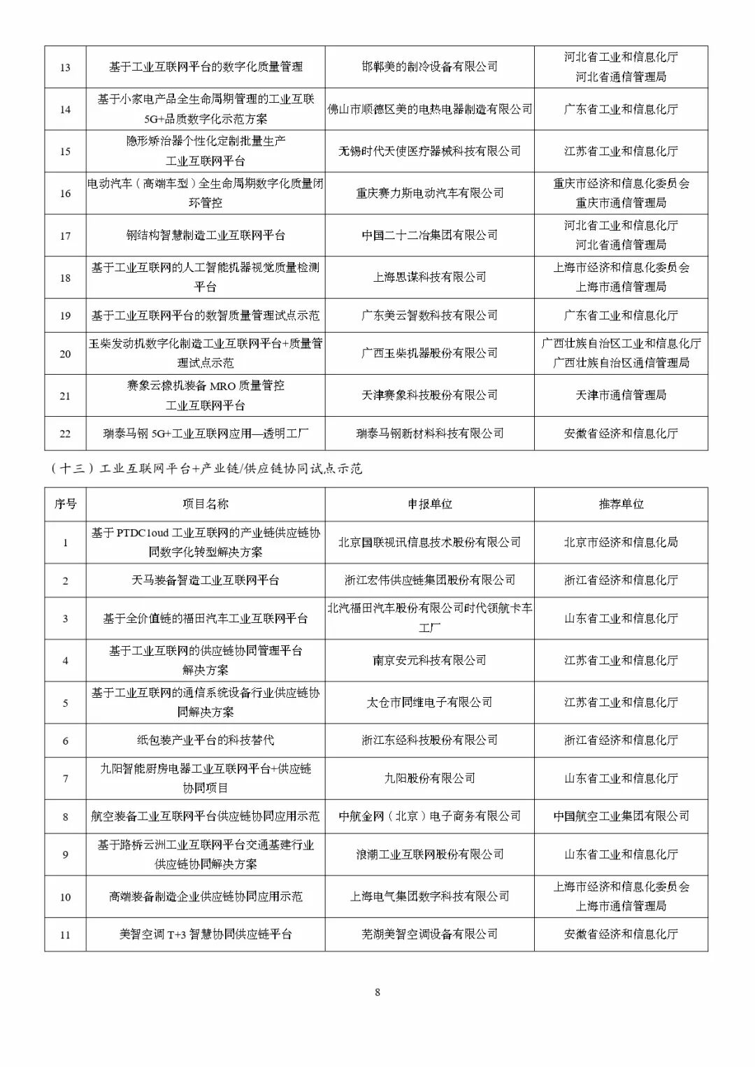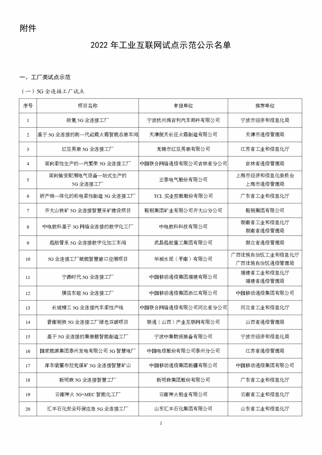 为深入贯彻《国务院关于深化“互联网+先进制造业”发展工业互联网的指导意见》,根据《工业和信息化部办公厅关于组织开展2022年工业互联网试点示范项目申报工作的通知》(工信厅信管函〔2022〕252号),经企业申报、地方推荐、专家评审,形成2022年工业互联网试点示范名单。现予以公示,欢迎社会各界监督。如有异议,请在公示期内与工业和信息化部信息通信管理局联系。公示时间:2023年2月13日至2023年2月17日联系单位:工业和信息化部信息通信管理局地址:北京市西城区西长安街13号传真:010-66024197邮箱:gyhlw@miit.gov.cn附件:2022年工业互联网试点示范公示名单工业和信息化部信息通信管理局2023年2月13日推荐阅读江苏省专精特新企业培育三年行动计划发布,有何亮点?上海:对市级“专精特新”、国家级“小巨人”企业分别给予不低于10万元和30万元奖励先制深度瞭望 | 工业4.0浪潮下的“两业融合”发展陈文玲:2023年,世界经济的“五个缓和”&中国经济的“五个回升”总裁班开年大课 | 与黄奇帆、陈文玲的巅峰对话