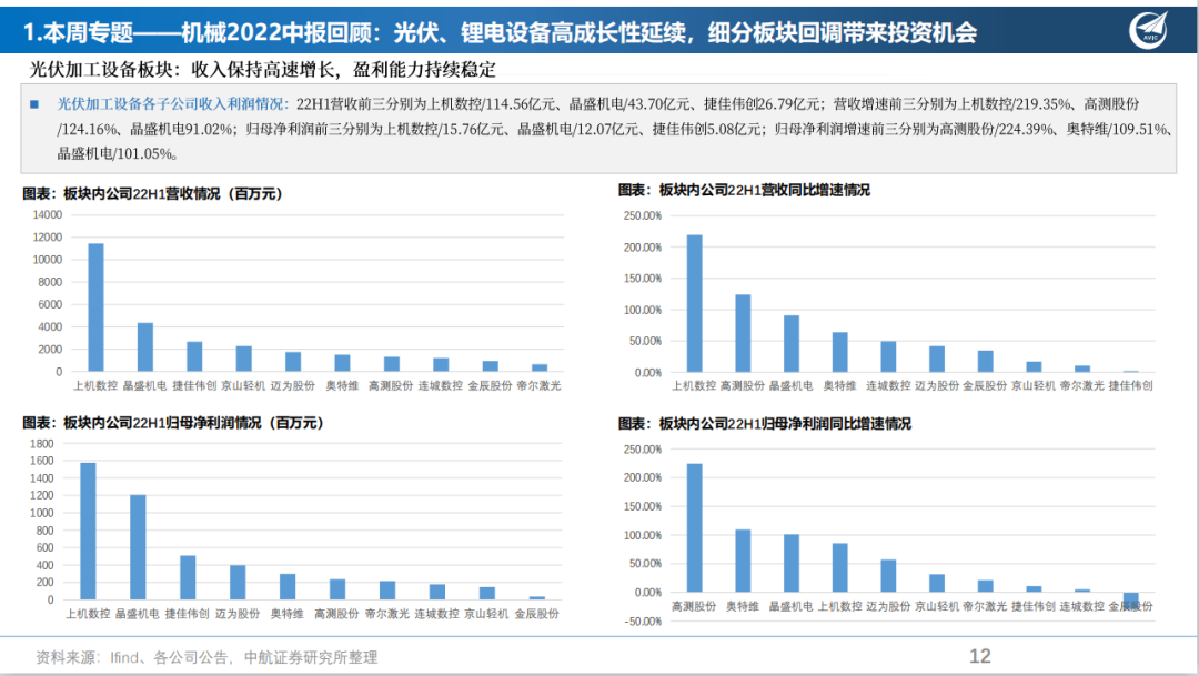 证券研究报告名称:机械设备2022中报回顾:光伏、锂电设备高成长性延续,细分板块回调带来投资机会