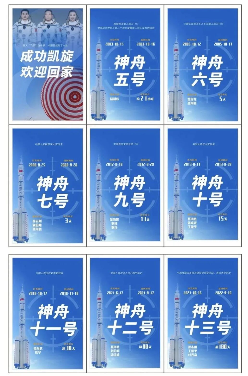中国8次载人飞天征程