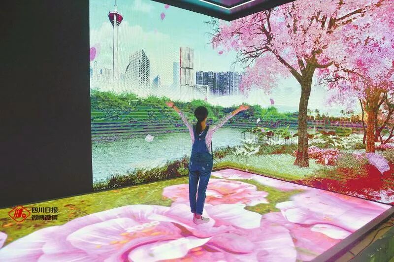 下图中看起来栩栩如生的樱花是一名工作人员正在测试的3D显示屏,这里可是西博会打卡发朋友圈的好地方啊!