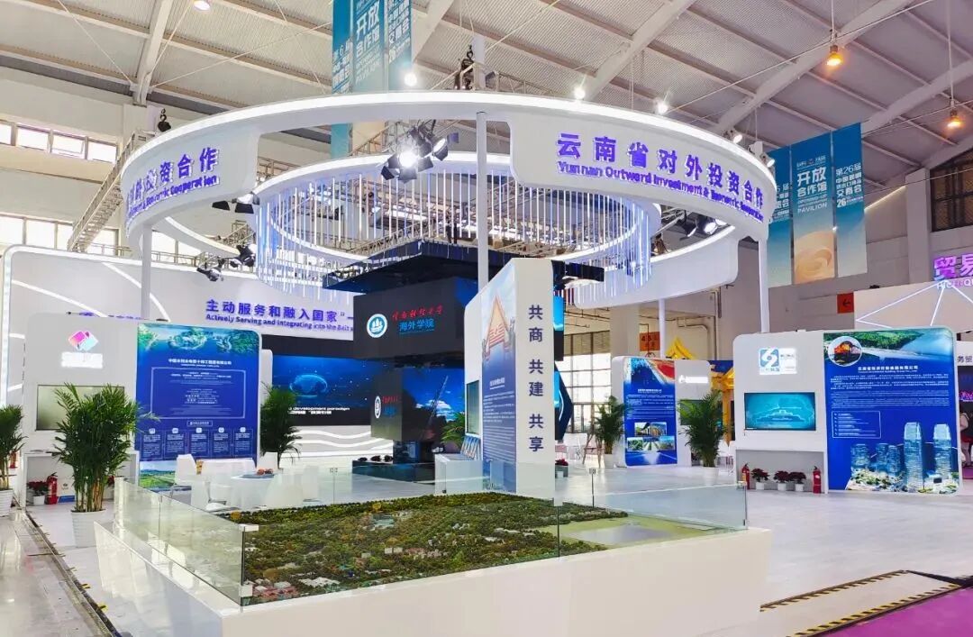 本届南博会主题为“共享新机遇,共谋新发展”,由商务部和云南省人民政府共同主办。集团展位位于5号馆对外开放馆云南省对外投资合作展区。该展区面积374平方米,集中展示了包含集团在内的11家云南省企业“走出去”的投资合作成果。集团展示形式为3块灯箱展板、一个LED屏、一个老挝万象赛色塔综合开发区沙盘。