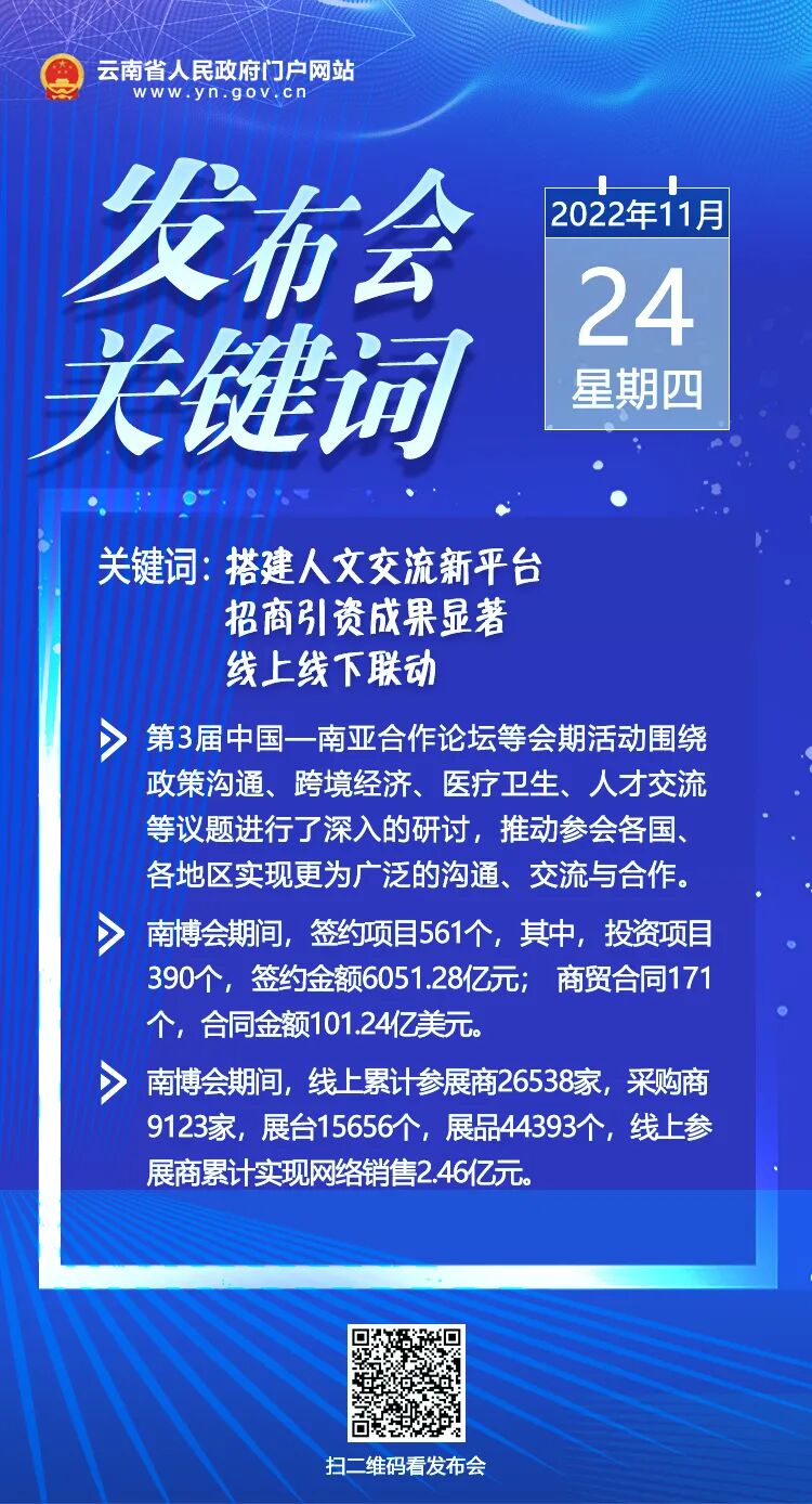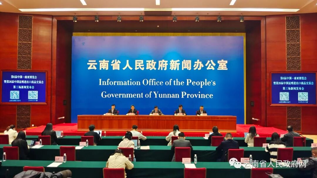 11月24日,第6届中国—南亚博览会暨第26届中国昆明进出口商品交易会第三场新闻发布会在海埂会堂召开,有关负责人介绍相关情况,并回答记者提问。