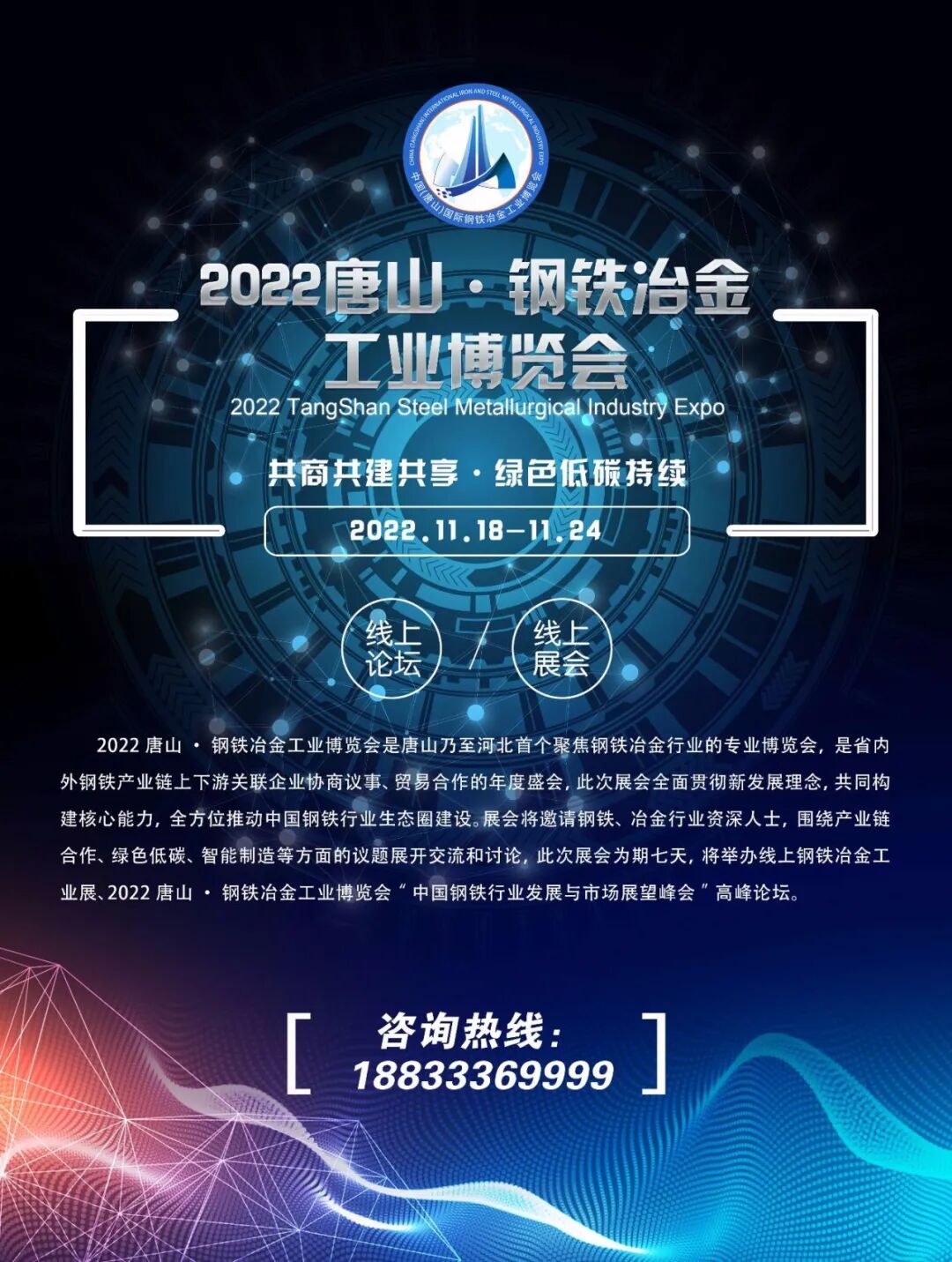 2022唐山·钢铁冶金工业博览会(以下简称钢博会),将于11月18日至24日以“线上展会+会议”的模式召开。