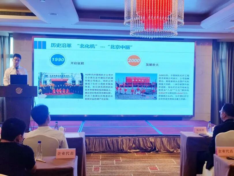 北京中丽制机工程技术有限公司工程部部长宁宇、经营服务部部长刘辉、市场部副部长杨帆,北京中纺精业机电设备有限公司市场部副部长梁亚鹏及近三十家化纤生产、织造染整企业的代表参加会议。会议由通用技术中纺院海西分院副院长郑小佳主持。