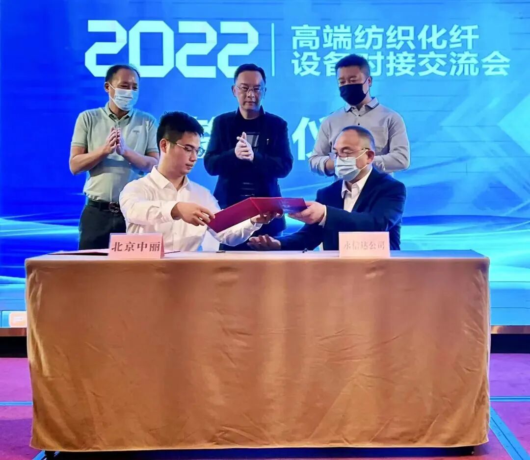 会上,晋江市永信达织造制衣有限公司与北京中丽制机工程技术有限公司在现场签署合作协议,这也是晋江永信达与北京中丽再次携手合作。截至目前,泉州市每天有1千台套通用技术中纺院化纤装备在运转,每年创造产值达数十亿。