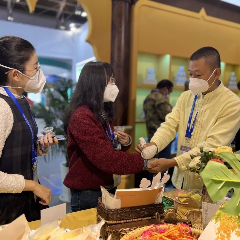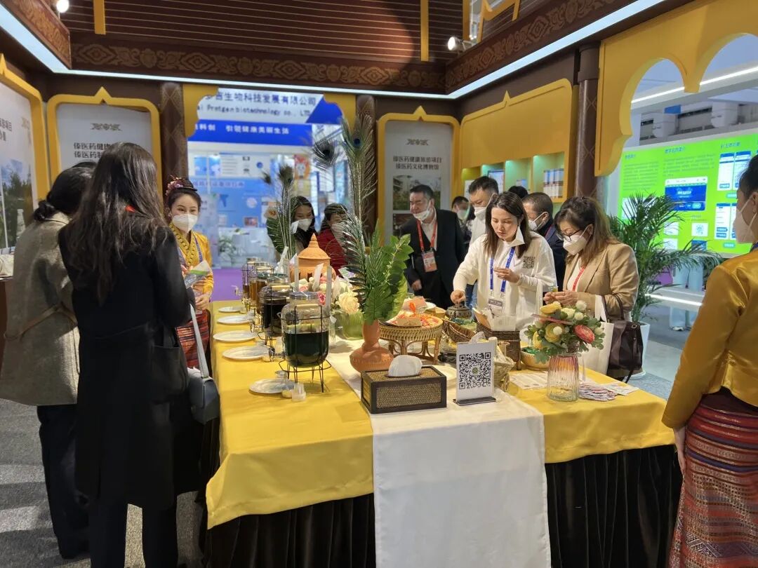 州傣医医院参加本次南博会的展示重点是医院“十四五”全面打造医疗——旅游为一体的健康旅游发展规划,同时进一步宣传了傣医核心理论、特色疗法、院内制剂等,为来宾提供了琳琅满目的药食同源食品品鉴和特色疗法体验。