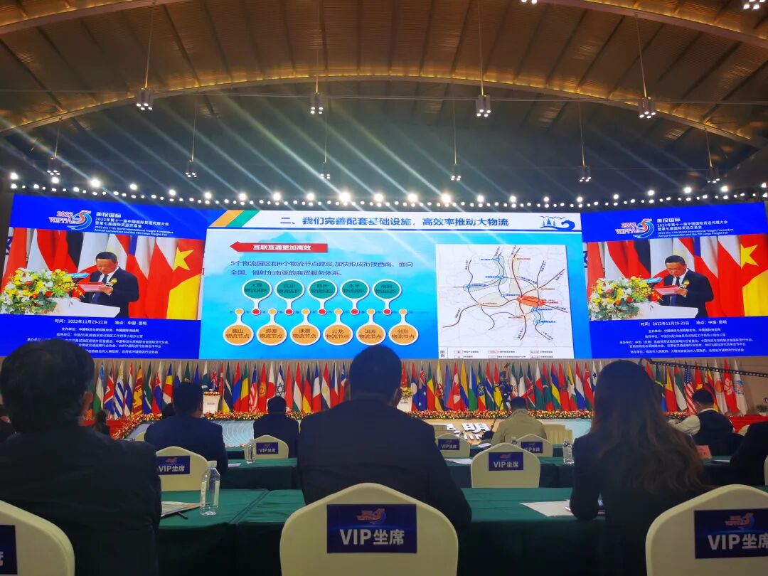 以 “绿虹架南北,当惊机遇殊”为主题的2022年国际货代“两会”作为南亚博览会的配套活动隆重举行。这场盛会由中国物流与采购联合会、中国(云南)自由贸易试验区工作领导小组办公室与中国国际海运网联合主办,并受到云南省政府各部门大力支持。