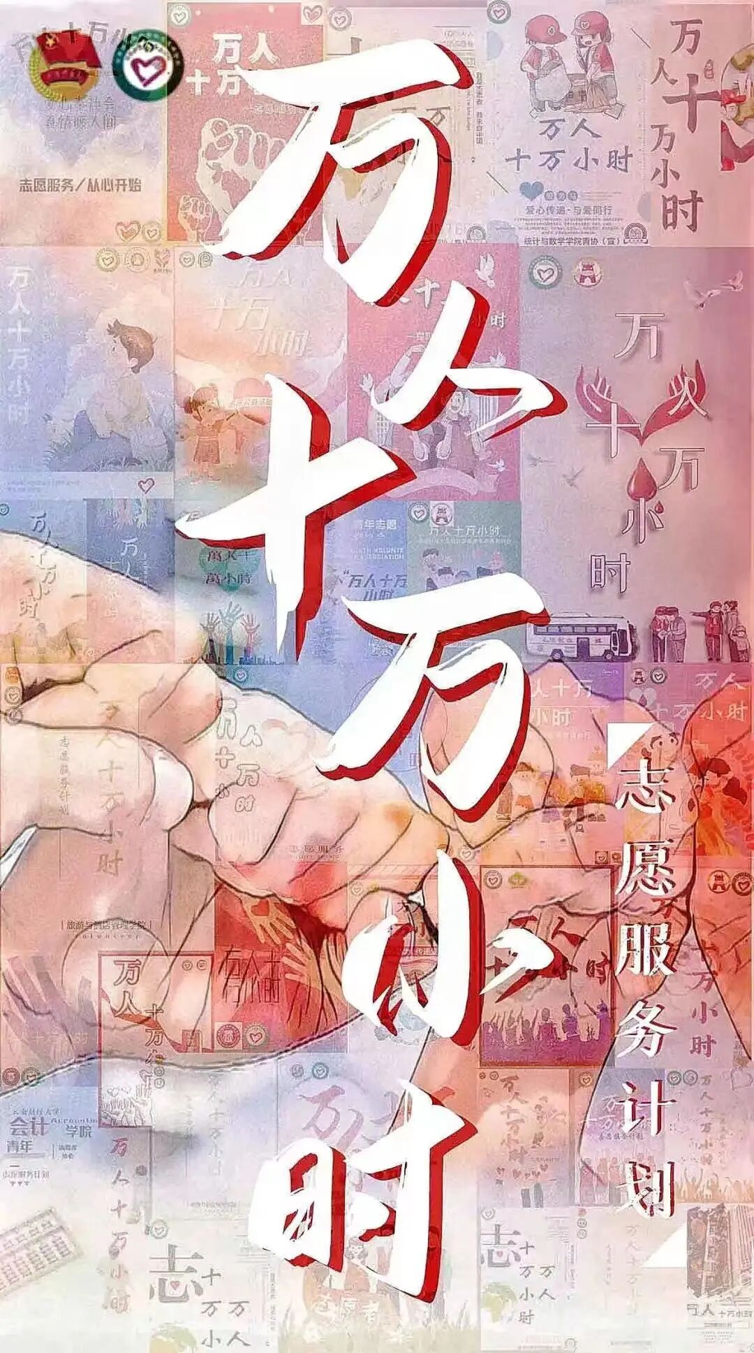 万人十万小时计划志愿服务活动,为大学生参与社会实践创造更多机会和舞台。我校青协制定万人十万小时志愿服务活动计划,组织我校广大青年志愿者参与,通过志愿服务时长累计,调动志愿者的积极性,共建和谐互助的校园风气。