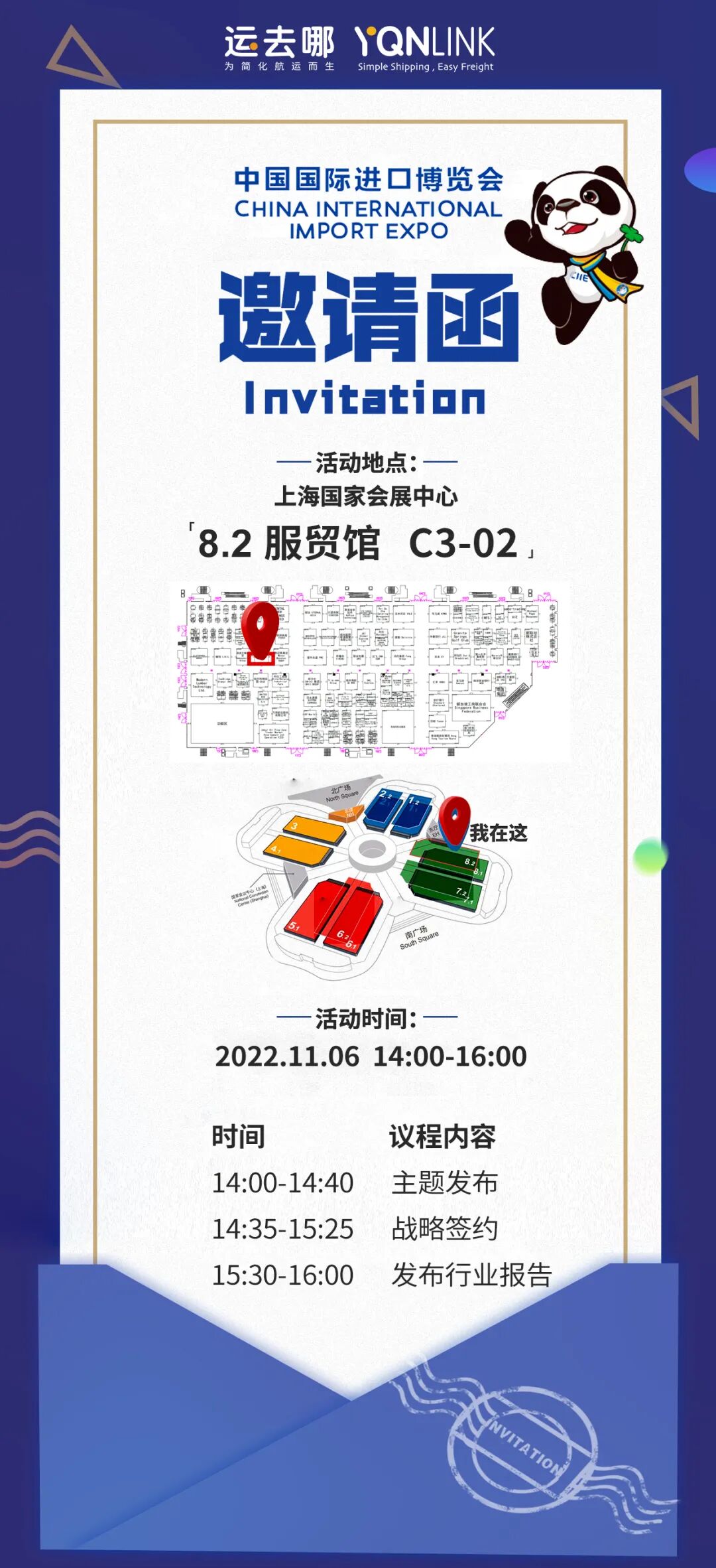 2022第五届进博会进入最后的倒计时,9天后,来自全世界的参展商将齐聚一堂,共襄盛会。「运去哪」也整装待发,我们将在8.2服贸馆- C3-02展位汇聚大咖精英,迎接八方来客,下面送上最新攻略,这些亮点你不容错过!