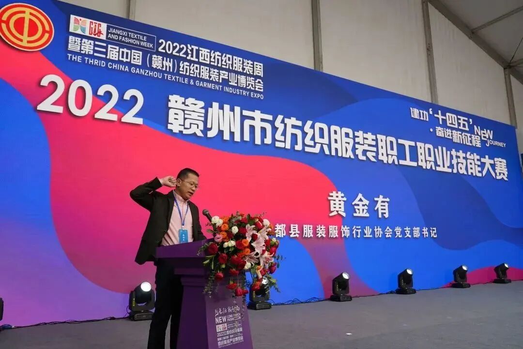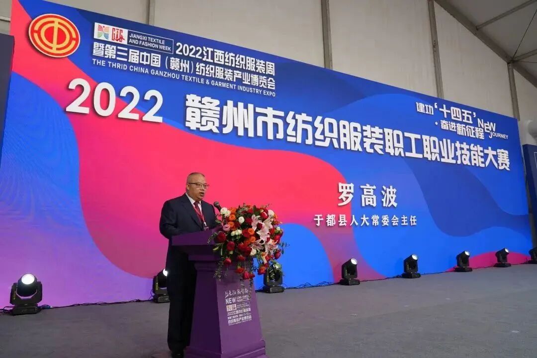 2022年11月19日上午,第三届中国(赣州)纺织服装产业博览会暨2022赣州市纺织服装职工职业技能大赛在于都县新长征·新智尚展馆活动中心隆重举行。
