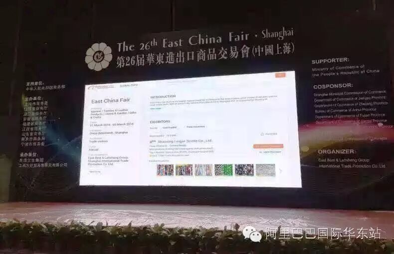 展会入口大屏幕,阿里直接展示开通“信保”供应商的信息。