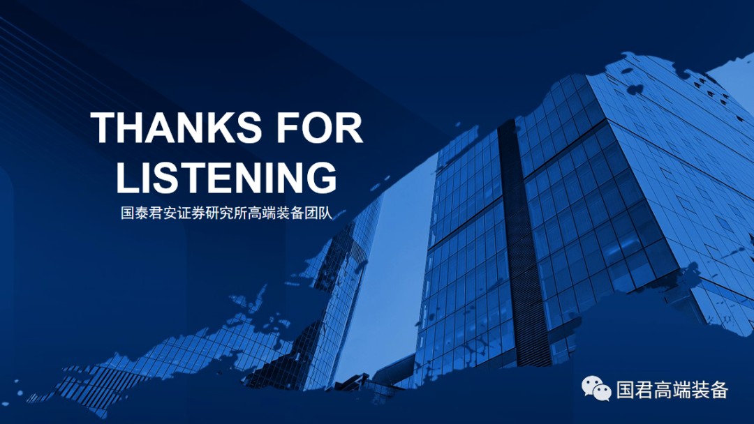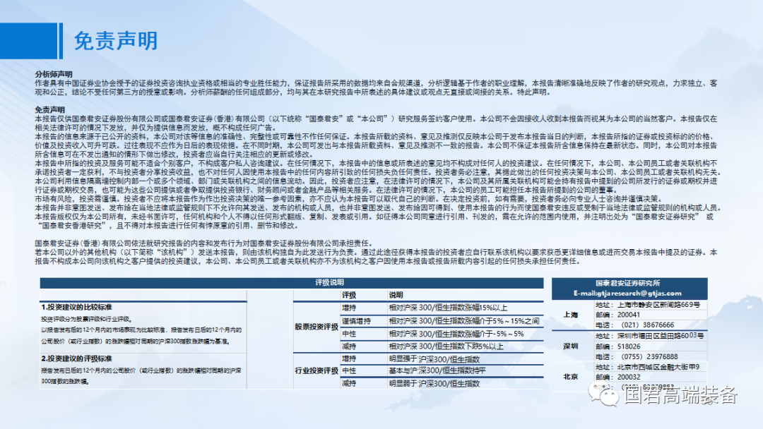 本公众订阅号(微信号: 国君高端装备 )为国泰君安证券研究所高端装备研究团队依法设立并运营的微信公众订阅号。本团队负责人徐乔威具备证券投资咨询(分析师)执业资格,资格证书编号为S0880521020003。