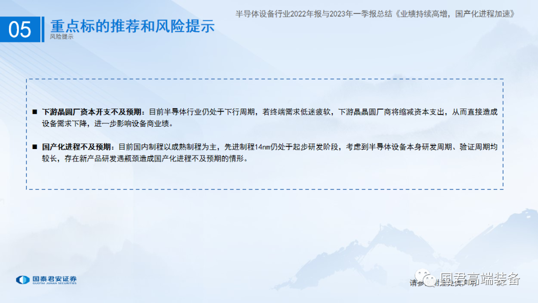 ▶风险提示:下游晶圆厂资本开支不及预期、国产化进程不及预期。