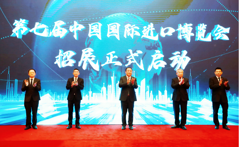 6月19日,2024年第七届中国国际进口博览会招展启动仪式在“进博会走进云南”活动期间举行。中国国际进口博览局副局长孙成海,商务部服贸司司长王东堂,中国国际进口博览局副局长刘福学,云南省商务厅副厅长冯震,中国银行交易银行部副总经理李晓玮共同启动第七届进博会招展。