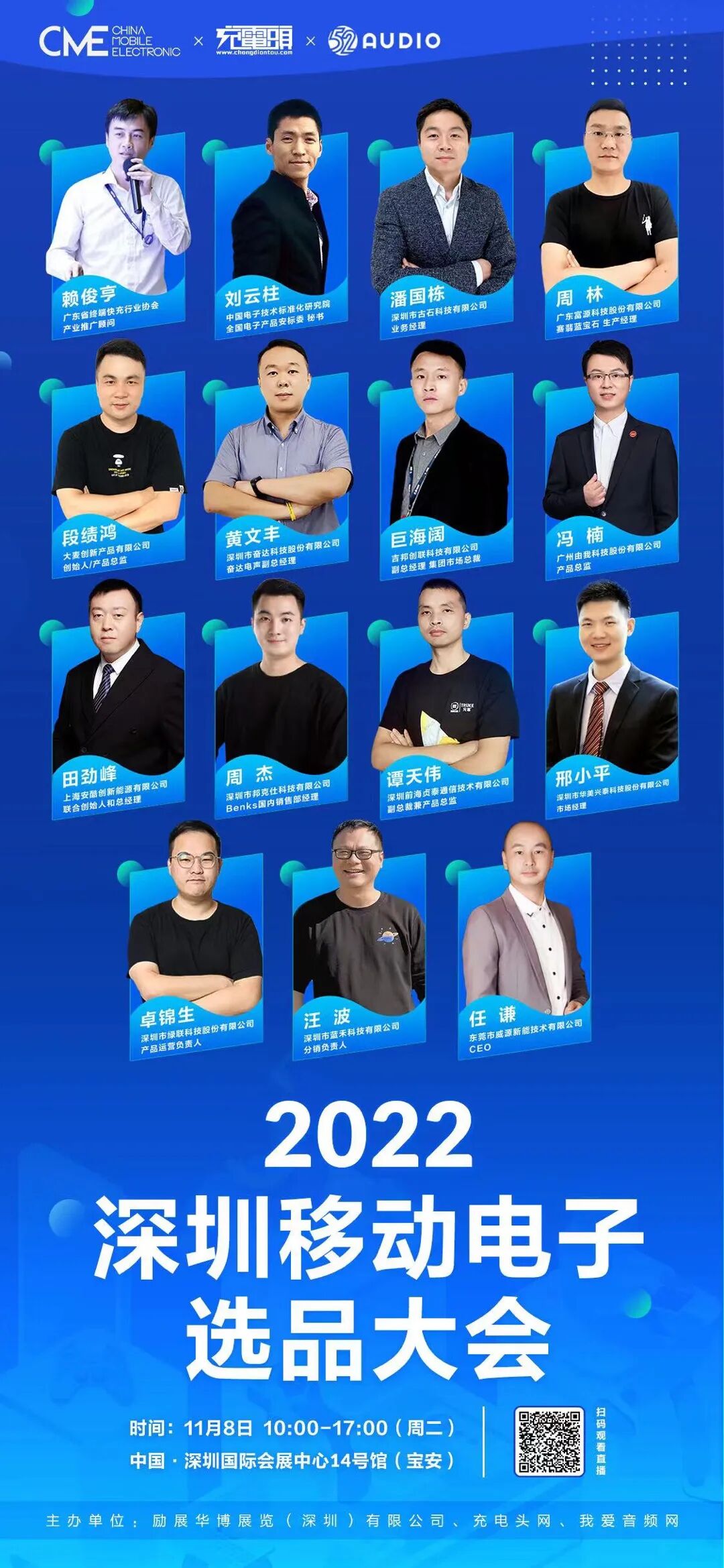 广东省终端快充行业协会的产业推广顾问——赖俊亨先生,赛西的技术总监/全国电子安标委秘书——刘云柱先生,古石的业务经理——潘国栋先生,赛翡蓝宝石的生产经理——周林先生,IDMIX的创始人/产品总监——段绩鸿先生,奋达科技的副总经理——黄文丰先生,吉邦创联的副总经理/集团市场总裁——巨海阔先生,由我的产品总监——冯楠先生,安酷创新的联合创始人/总经理——田劲峰先生,邦克仕的国内销售部经理——周杰先生,充客的副总裁兼产品总监——谭天伟先生,华美兴泰的CEO——杨昌军先生,绿联的产品运营负责人——卓锦生先生,图拉斯的分销负责人——汪波先生,威源新能的CEO——任谦先生。
