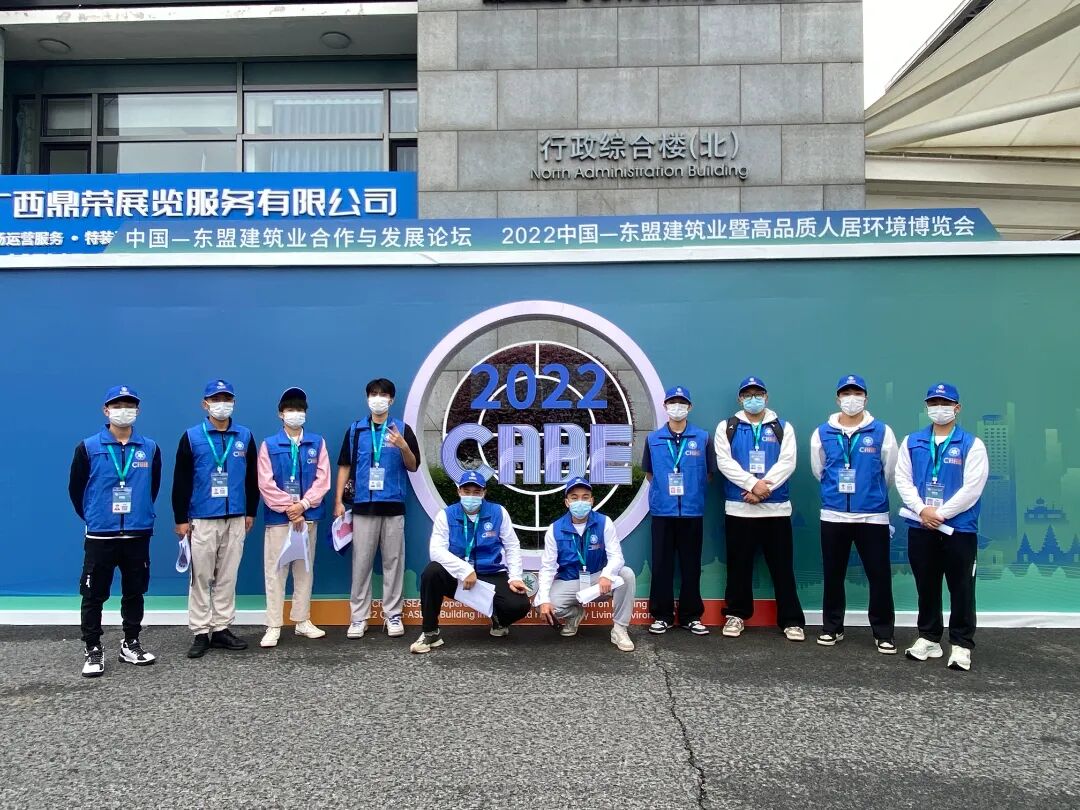 在刚刚圆满结束的中国-东盟建筑业论坛、2022中国-东盟建博会中,我校18名辅导员带领165名学生志愿者分别在展会接待组、展会秩序组、宣传材料组、疫情防控组、招商招展组、行业创新大会组、开幕式和主论坛组等工作组开展服务工作,以高度的责任心和高水平的工作质量完成相关工作,得到组委会及参会嘉宾的一致好评!一起来看看志愿者们在建博会期间开展志愿服务的工作瞬间吧!